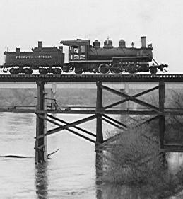 Southern's lone surviving steam engine crosses the Tuolumne River bridge