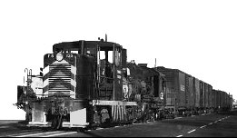The solution for Modesto was to keep an ordinance on the books that prohibited steam locomotives from operating on city streets. This forced the railroad to keep their pair of electric steeplecab locomotives on the roster until 1947 for the sole purpose of escorting steam-powered trains through Modesto. Thus the railroad, for time, rostered a very eclectic collection of steam, electric and finally, diesel power. |