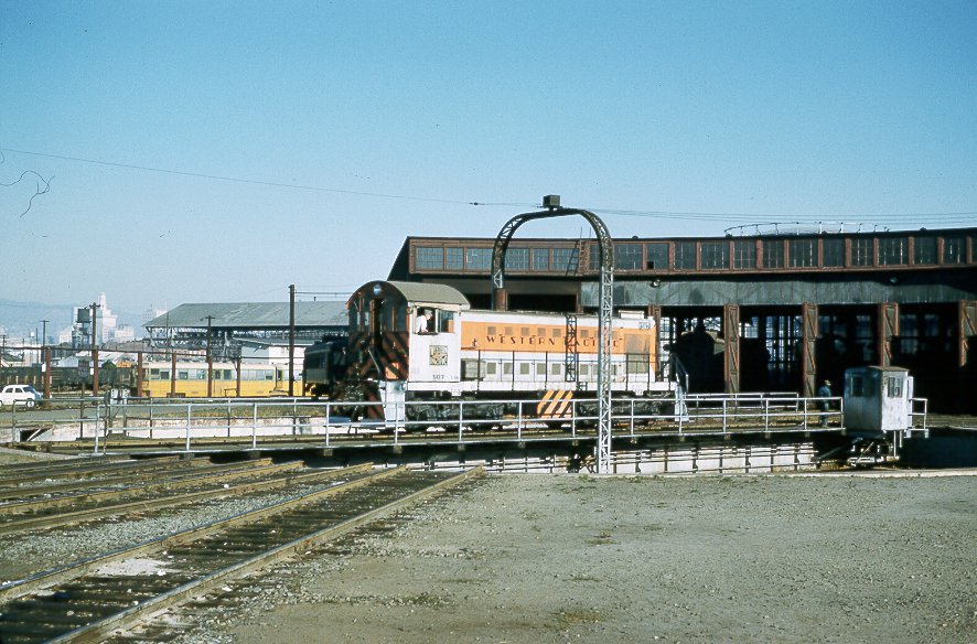 Oakland turntable is switcher 507, an Alco S-1 rated at 660 horsepower.