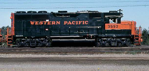 By the time the Western Pacific needed more road power in the year 1979, EMD had deleted the GP40 from its catalog, replacing it in 1972 with the electronically improved GP40-2. WP had been experiencing a traffic boom and was often short on power, forcing the operating department to press pool units on the railroad into continued (and expensive) service. The railroad finally arranged with Union Pacific to lease a set of UP C30-7s and used the six-axle G.E.s for much of 1979 and into 1980. WP finally placed an order for five GP40-2s in 1979, taking delivery of them in July of that year. They were numbered 3545-3549 in sequence behind the last GP40. All were delivered in the New Image paint scheme and featured air conditioning, "clean" cabs and extended dynamic brakes. In an interesting oversight, WP failed to order the now-standard signal light package found on the majority of fleet in the late 1970s. Western Pacific's final locomotive order as an independent